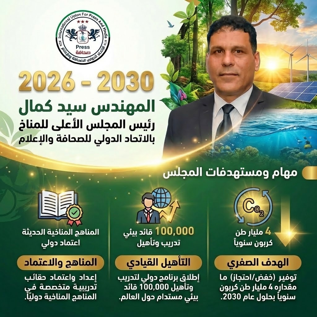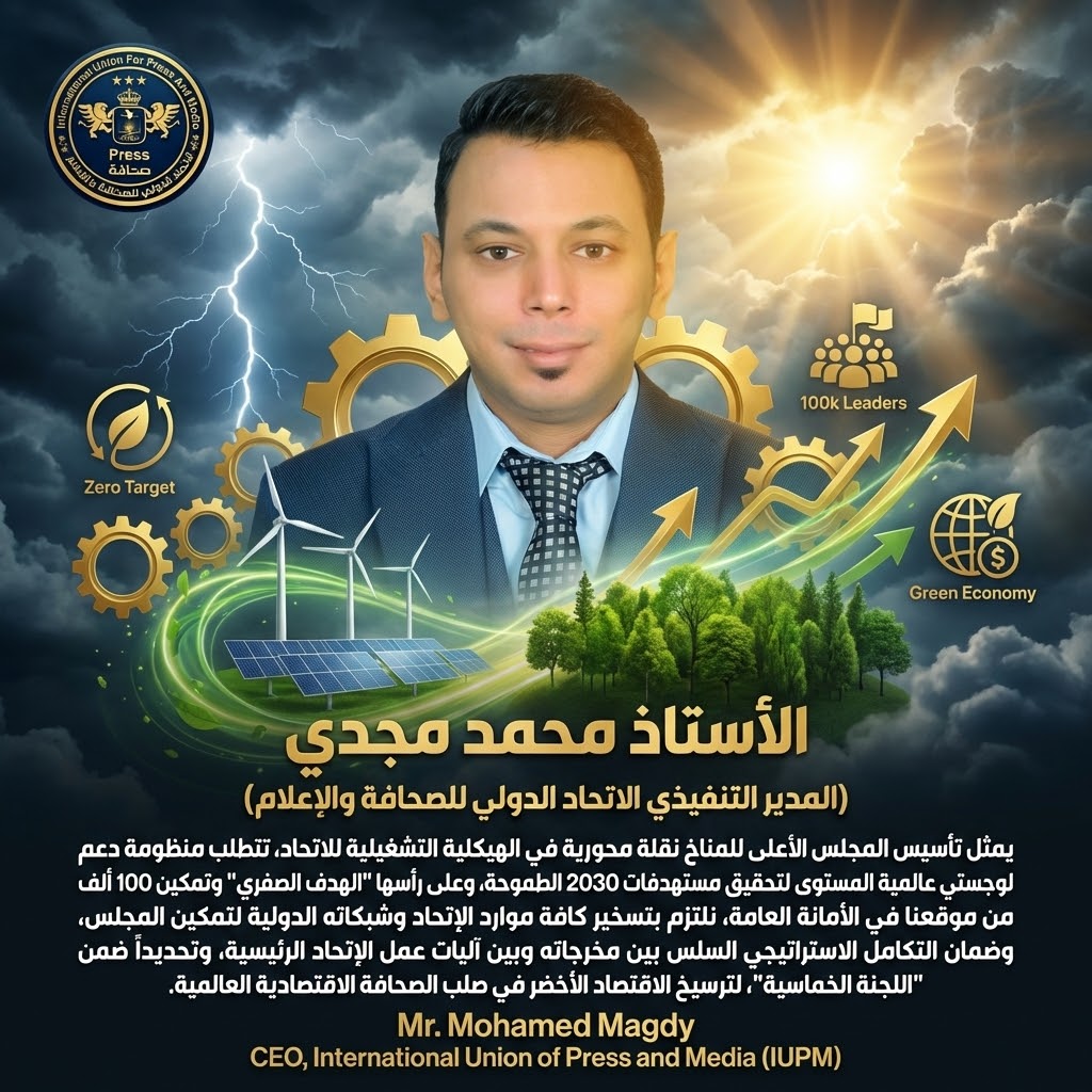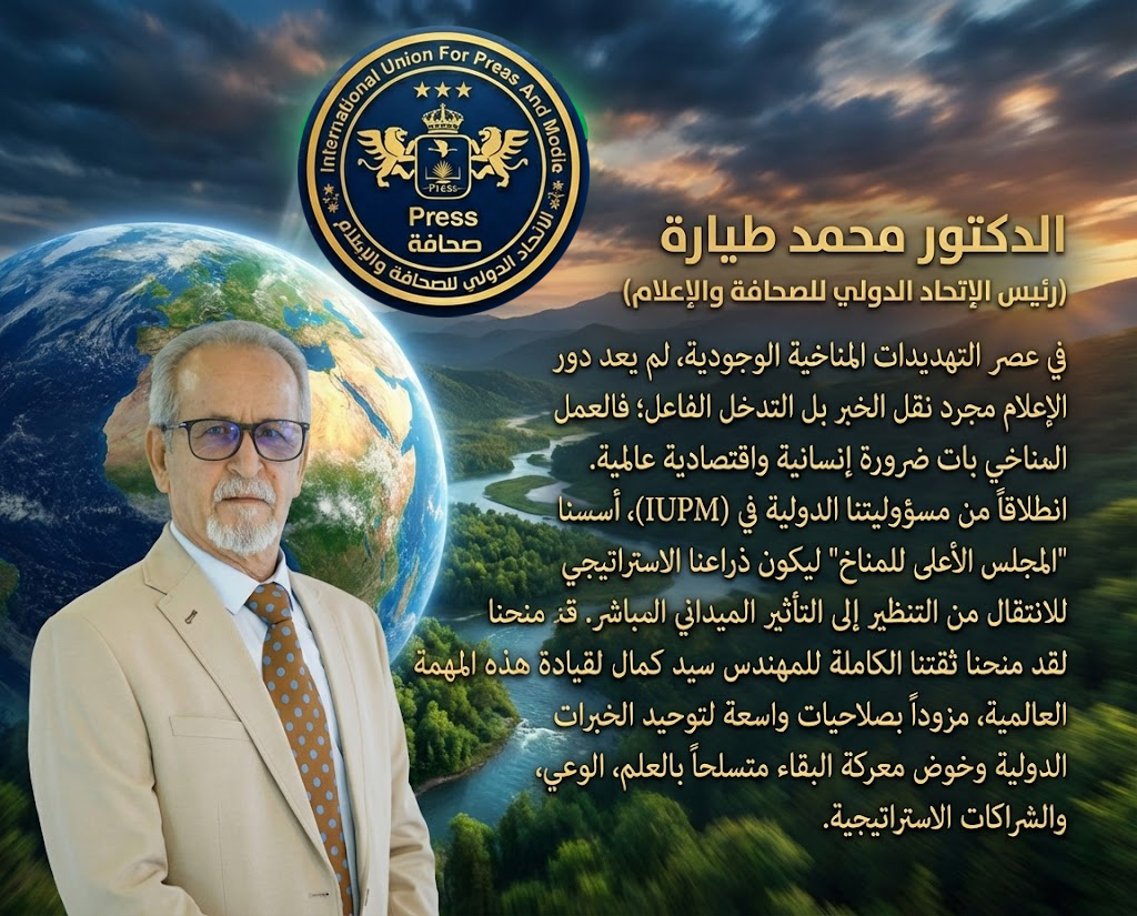 في خطوة استراتيجية فارقة تهدف إلى نقل دور الإعلام الدولي من “دائرة الرصد والتحذير” إلى “دائرة الفعل والتنفيذ” في مواجهة التحديات البيئية، أعلن الاتحاد الدولي للصحافة والإعلام (IUPM) اليوم رسمياً عن تأسيس “المجلس الأعلى للمناخ”.